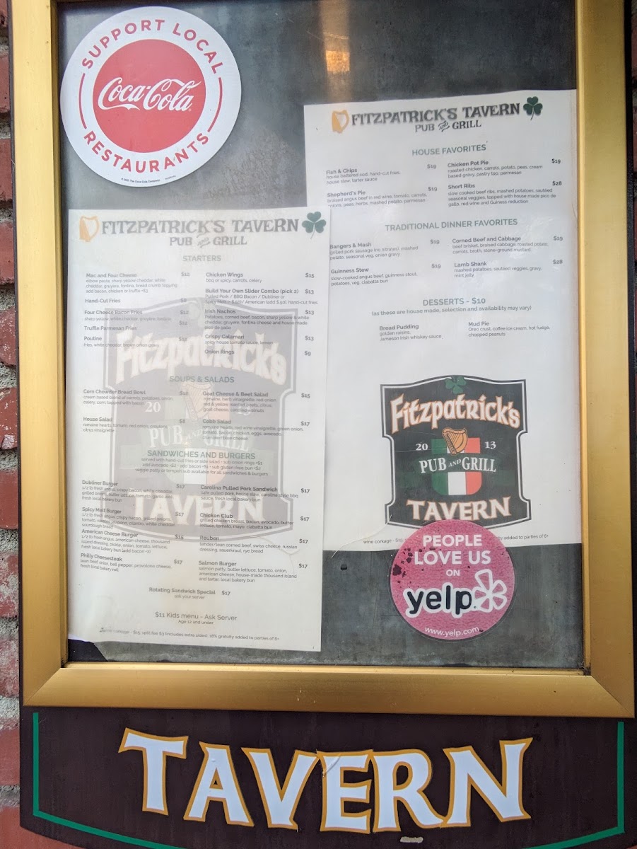 Fitzpatrick's Tavern Menu